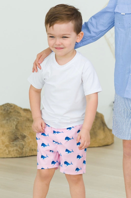 Pink Whale Swim Trunks