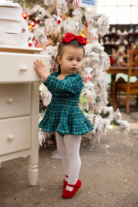 Ruffle Collar Christmas Tree Hand Embroidered Pima Bloomers Set