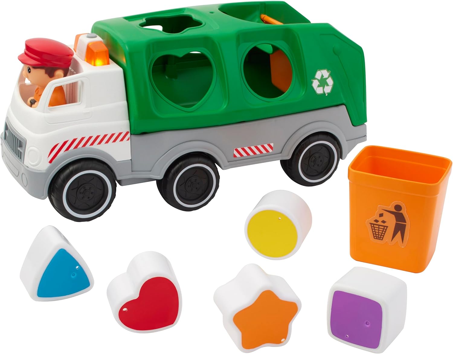 Teach your little ones about recycling and shapes with the Kidoozie Shape Sorting Recycling Truck. This motorized truck features lively music, flashing lights, and realistic engine revving sounds. Kids can also practice shape recognition by sorting the colorful blocks into the truck's back bed. Ages 12m+.