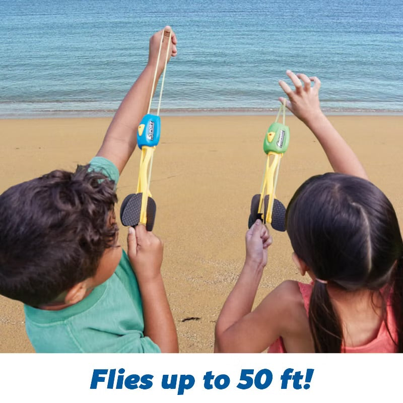 Fly high with this foam, lightweight, slingshot rocket that flies up to 5 feet! Bring it along with you anywhere you want and learn the physics of kinetic energy. Test different lauch heights and develop STEM skills all while having so much fun! Who's rocket can fly the highest?